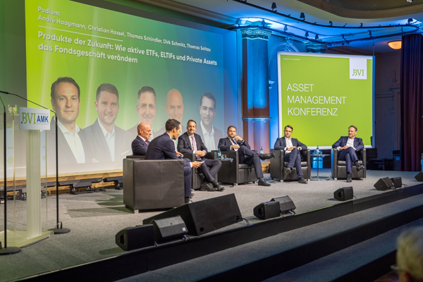 Die Fondsbranche steht vor nachhaltigen Veränderungen, alte Rezepte greifen nur noch bedingt. Wie die Fondsgesellschaften auf diesen Wandel regieren, beleuchtete Philipp Koch (McKinsey) in seinem Vortrag „Assetmanagement im Spannungsfeld: Weiter steigende Kosten und sinkende Erträge“. Welche Rolle dabei Produktinnovationen, neue Assetklassen und neue Technologien spielen, diskutierte anschließend eine Runde von Vorständen: André Haagmann (Union Asset Management Holding), Christian Hassel (Commerzbank), Thomas Schindler (Allianz Global Investors), Dirk Schmitz (BlackRock Asset Management Deutschland) und Thomas Soltau (Smartbroker). Das Panel moderierte Tim Kreutzmann (BVI).