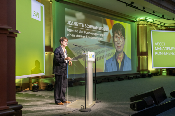 Mit welchen Maßnahmen die neue Bundesregierung den Fondsstandort Deutschland stärken will, erläuterte Jeanette Schwamberger (Bundesministerium der Finanzen) und gab Einblicke aus erster Hand in die politischen Pläne und Prioritäten. Die Reform der privaten Altersvorsorge soll zügig vorangetrieben und noch 2025 – vor der Frühstart-Rente – vom Bundeskabinett beschlossen werden.